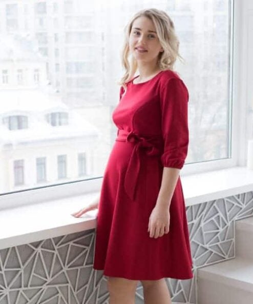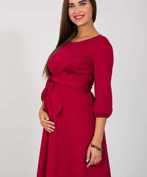 Это женственное платье для беременных и кормящих из трикотажа джерси подарит вам возможность чувствовать себя настоящей леди. Завышенная талия и расширенная юбка будут скрывать ваш животик во время беременности, а после рождения малыша весьма кстати окажутся потайные молнии в рельефах. Спущенное плечо, пышный рукав 3/4, юбка-полусолнце и пояс-кушак — интересные детали фасона при сдержанной цветовой гамме создают элегантный, классический образ.