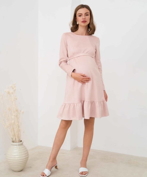 Пудровое замшевое платье для беременных и кормящих Ketty