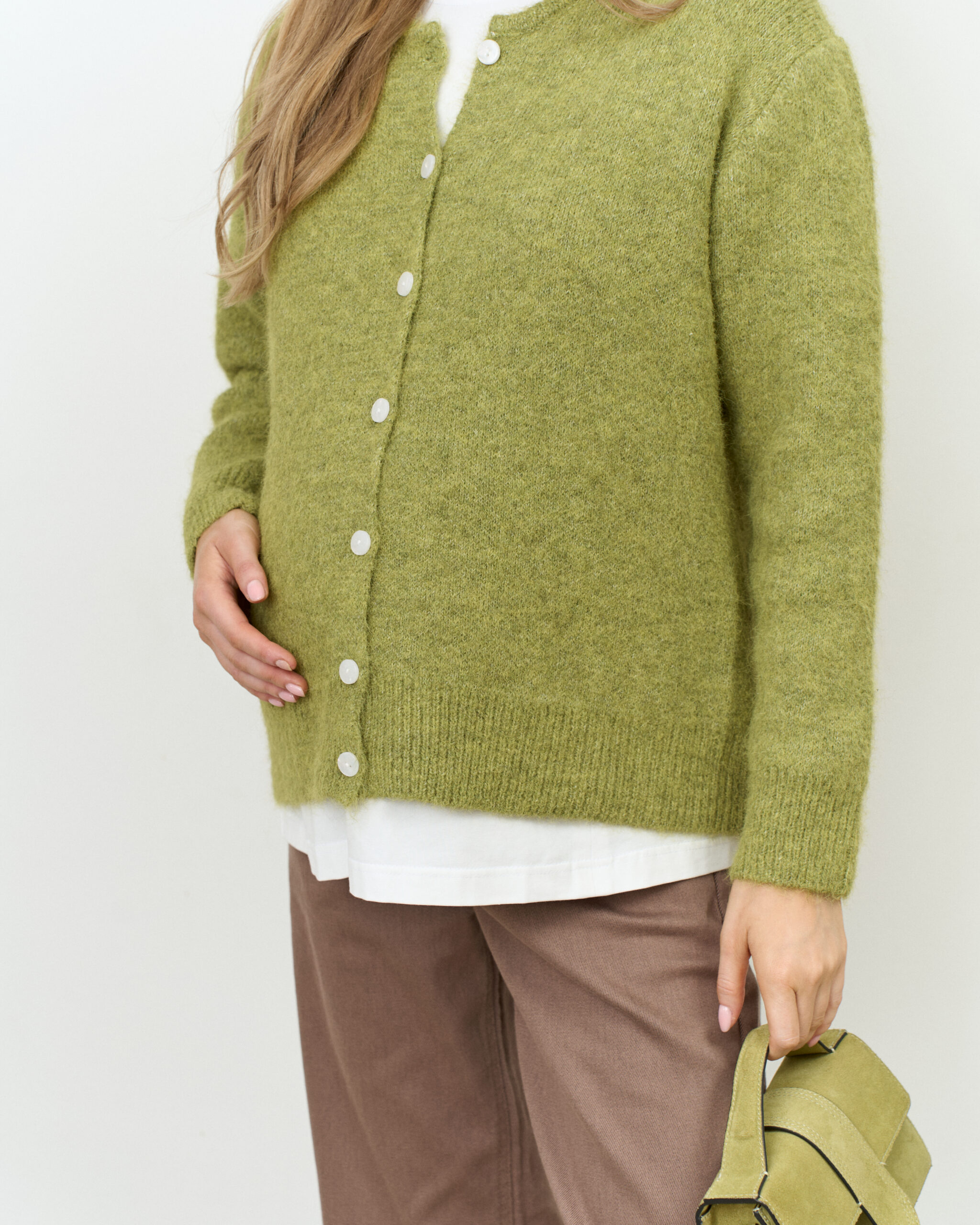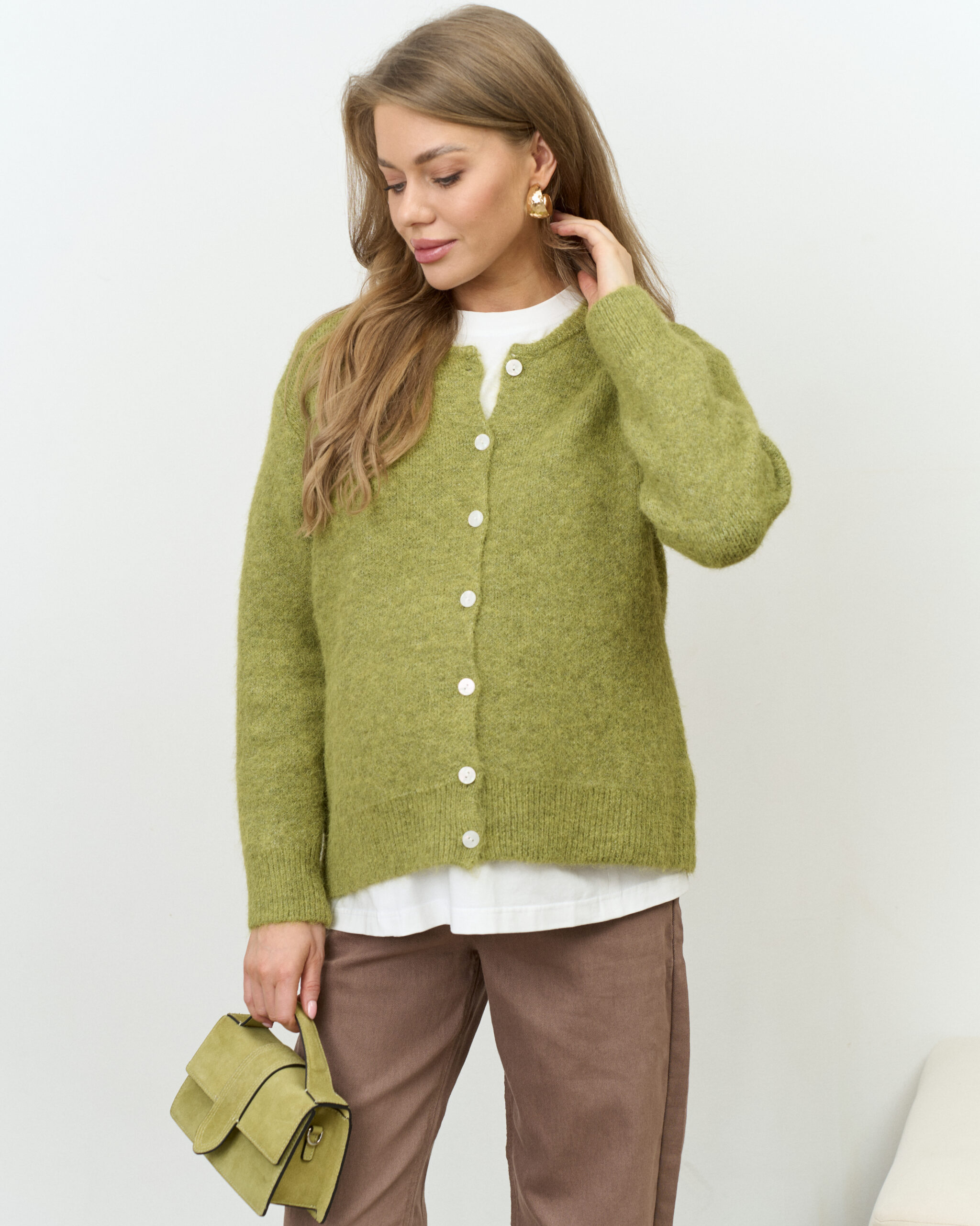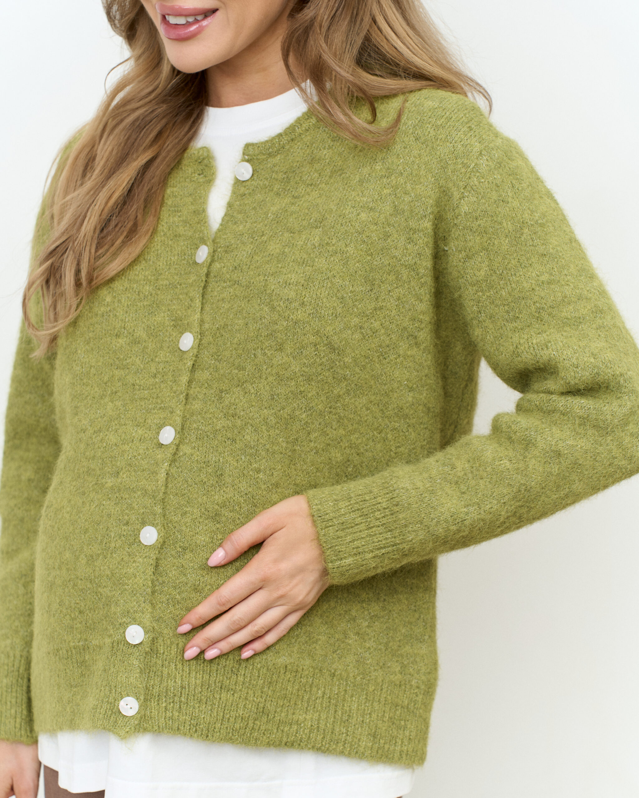 Зеленый пушистый кардиган на пуговицах Megan