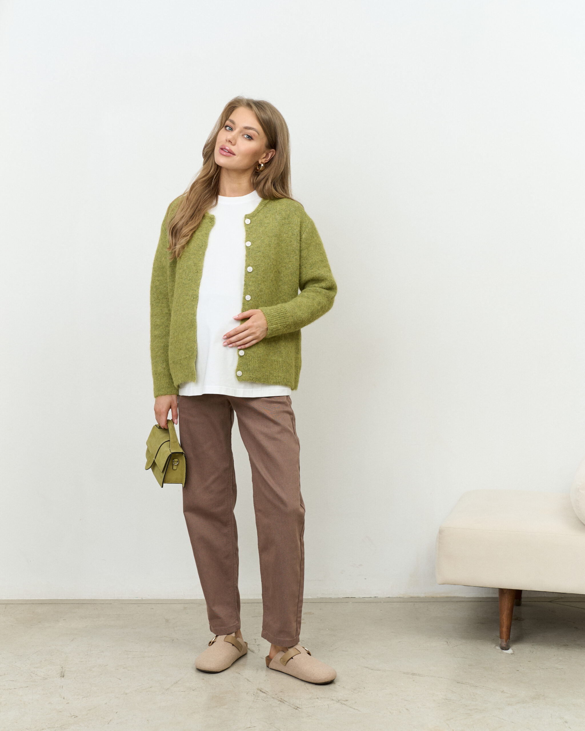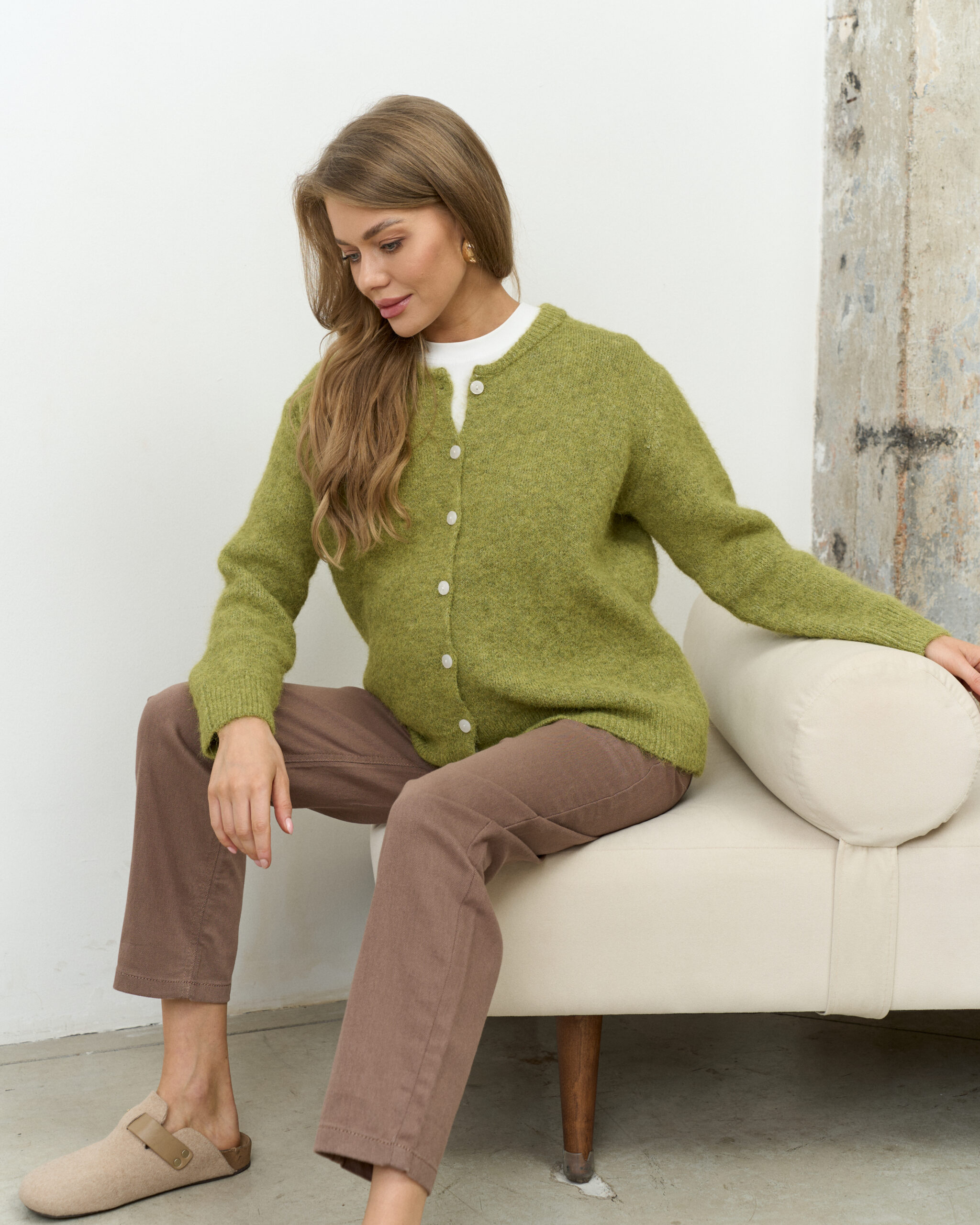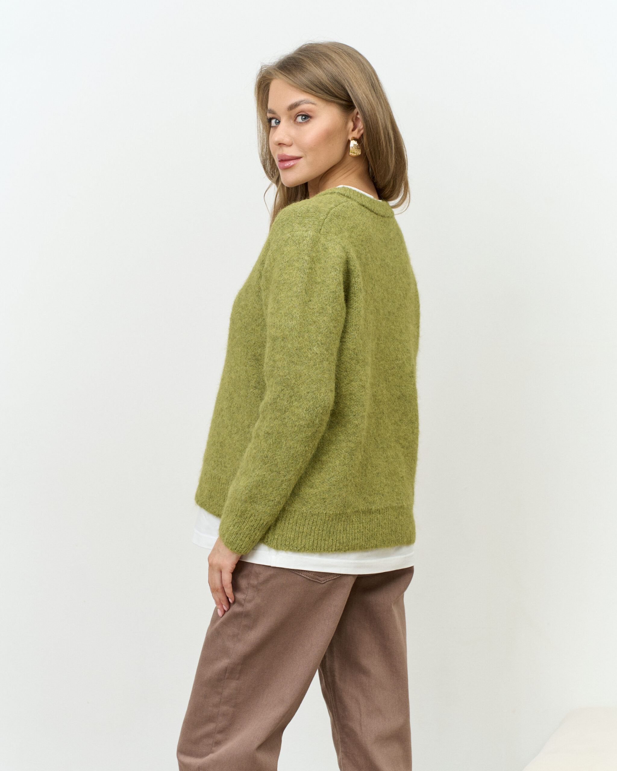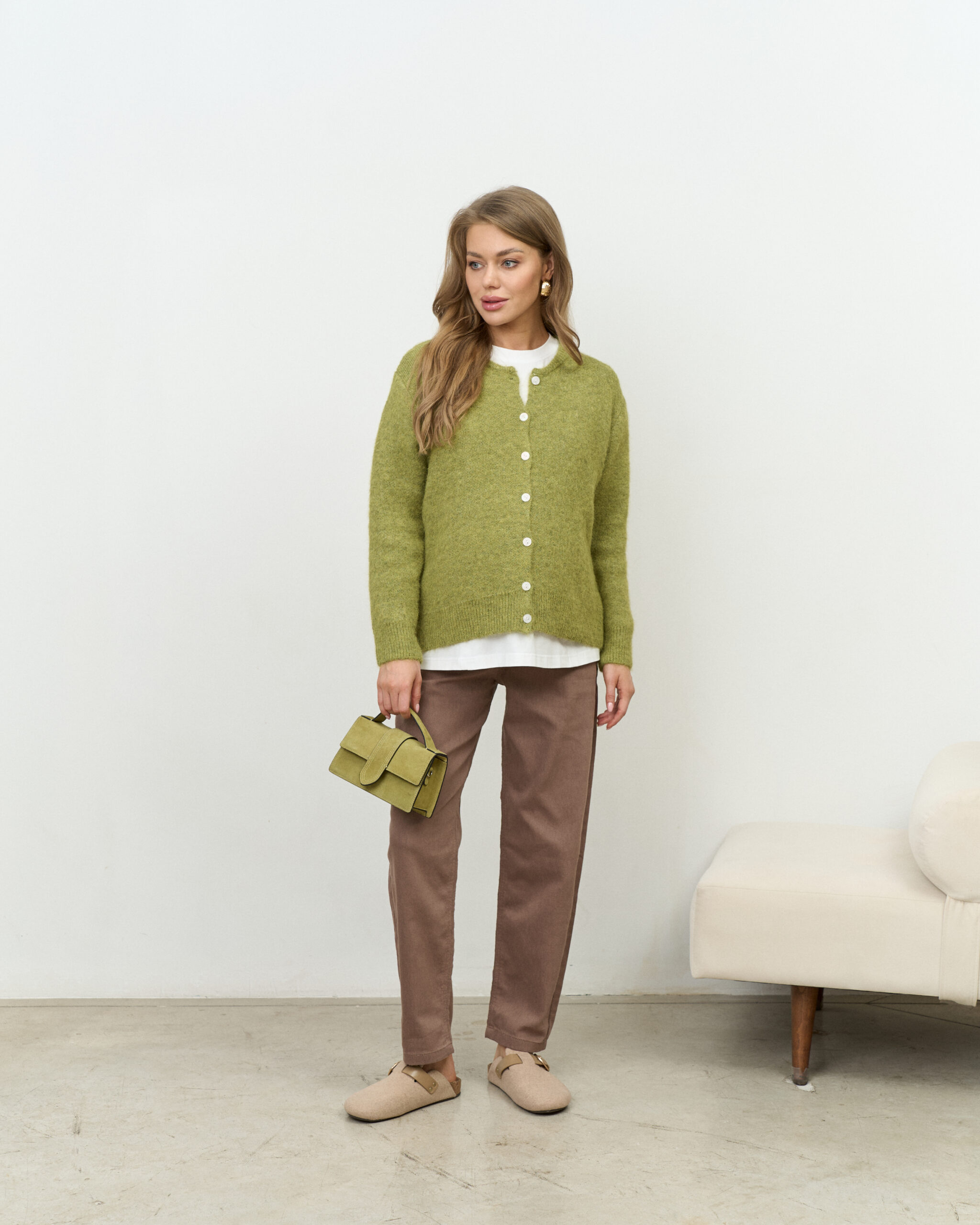 Зеленый пушистый кардиган на пуговицах Megan