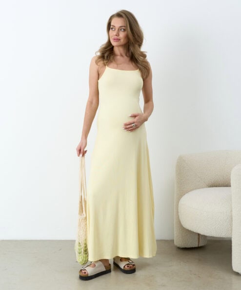Стильное платье-комбинация длины макси из хлопкового трикотажа в рубчик, которое подойдет на весь период беременности и после.