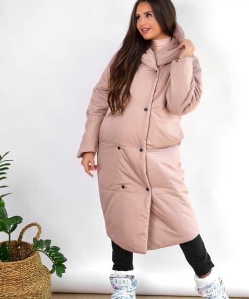 Зимнее пальто в цвете розы для беременных и кормящих Flambe